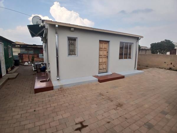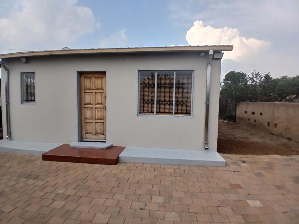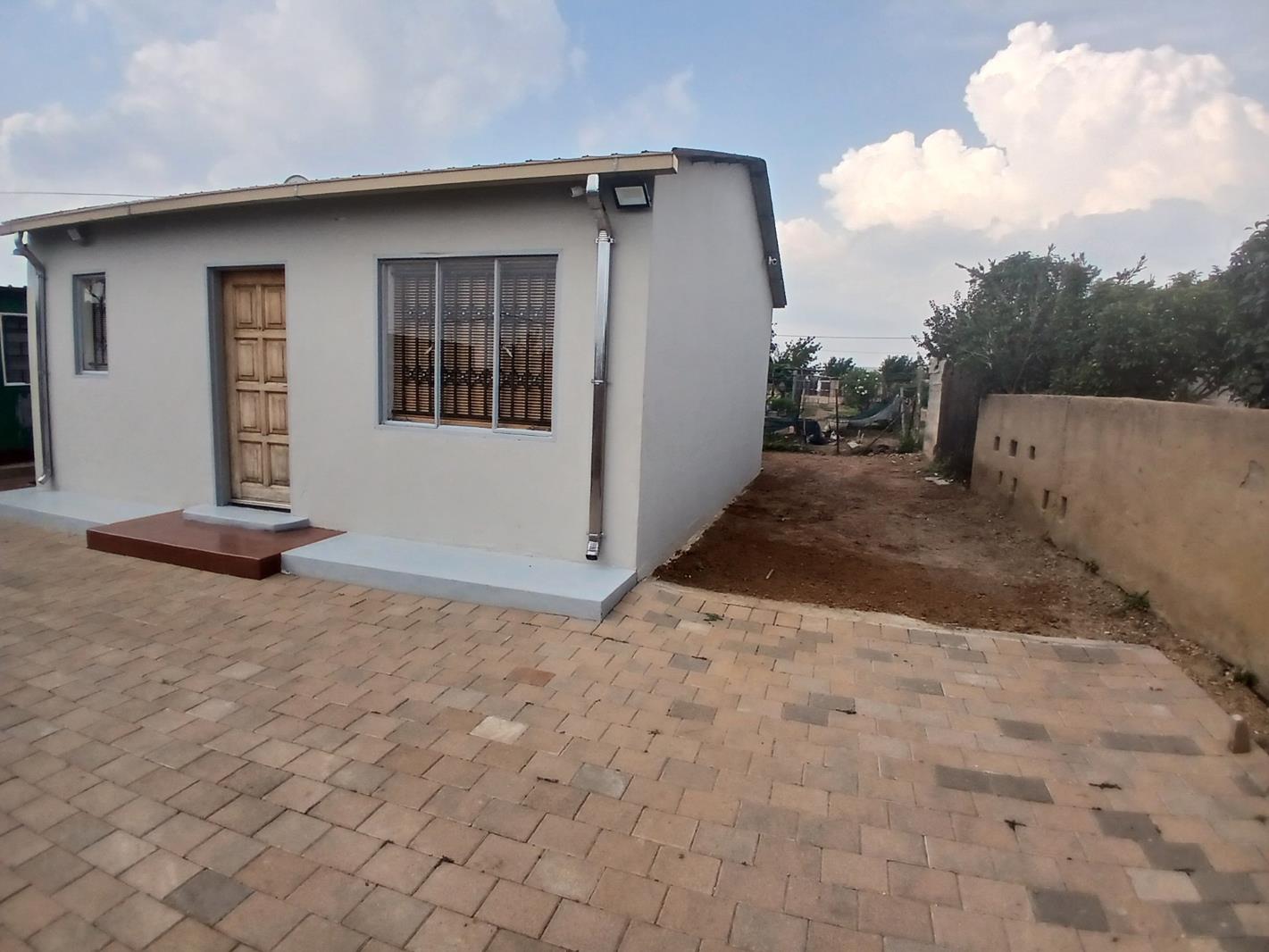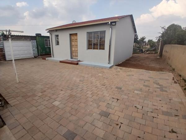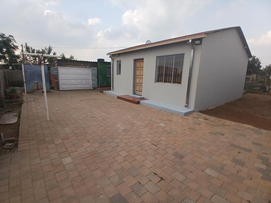 RDP house in a developing area, tarred roads under construction. Situated very close to the community center. Wall fence on 2 sides and the front only plus the pallisade gate. The yard is paved with ample opportunities. It is a pan handle type of yard. It offers 2 bedrooms, no bathroom inside, open-plan Tv room and kitchen. Beautiful ceilings with down lights, camera that can view 3 spots. It is well done, well painted inside out, wooden solid doors. Garage and outside room made of sink as an extra. The yard is big to accommodate an extension.