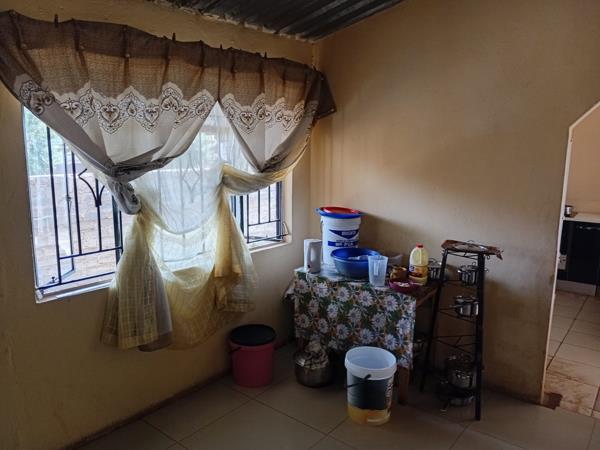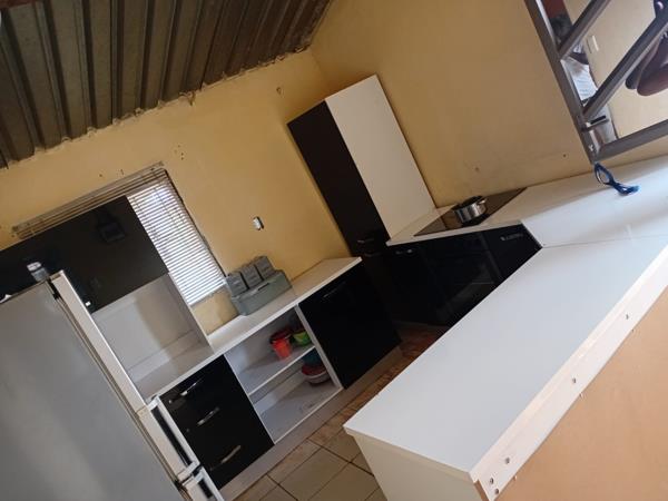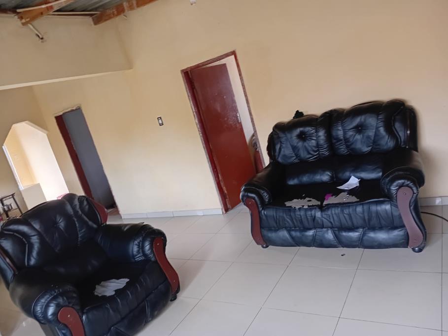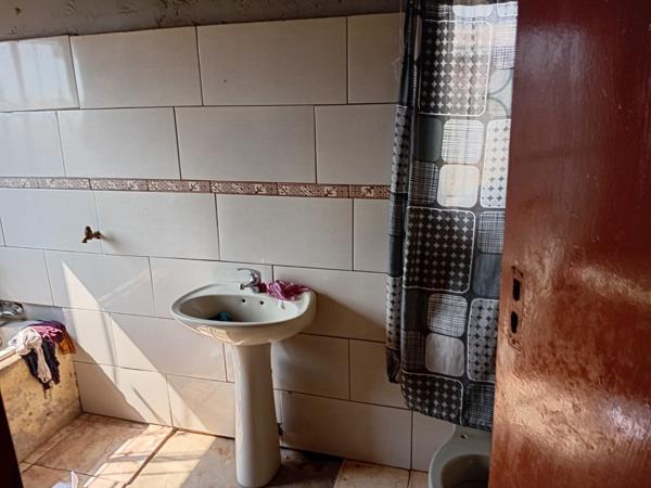 Three bedroom house , one bathroom and no garage or car port. The yard is spacious, living space is big enough to accommodate the Tv room and dining room. . Bathroom is well tiled from the middle downwards.. Yard is wall fenced right round with no access gate. It is priced to sell.