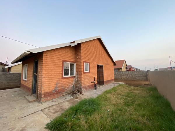 Two bedroom house with two access gates, wall fence right round, meaning it is well secured. It is situated in a well developed area with tarred roads, streets lights. It is a good area , situated close to N1 and Golden highway. The shopping mall and public transport is a stone throw away. It is located closer to all important amenities and are easily accessible. New floor tiles, newly painted ceilings, new kitchen Bic , newly painted walls inside. the yard is big to accommodate the double garage,it can also accommodate the double storey home.