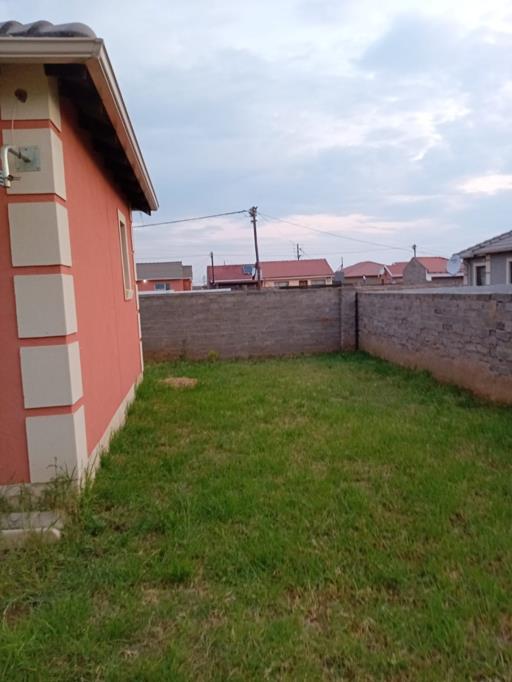 Two bedroom house with aluminium window frames, sliding door in the main bedroom. Huge yard to accommodate the future extention. One bathroom with a bath tub, basin and toilet. Bedroom sizes are standard, floors are completely done,ceilings are well done. Kitchen offers the sink only. The house is well painted inside out. It is priced to sell.