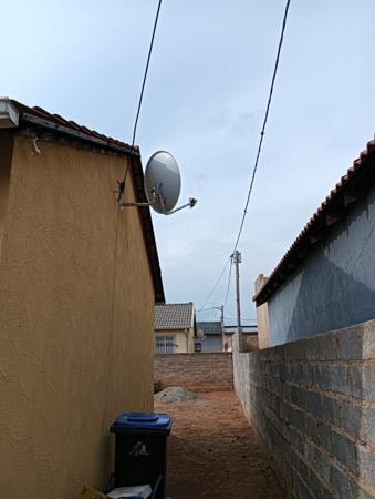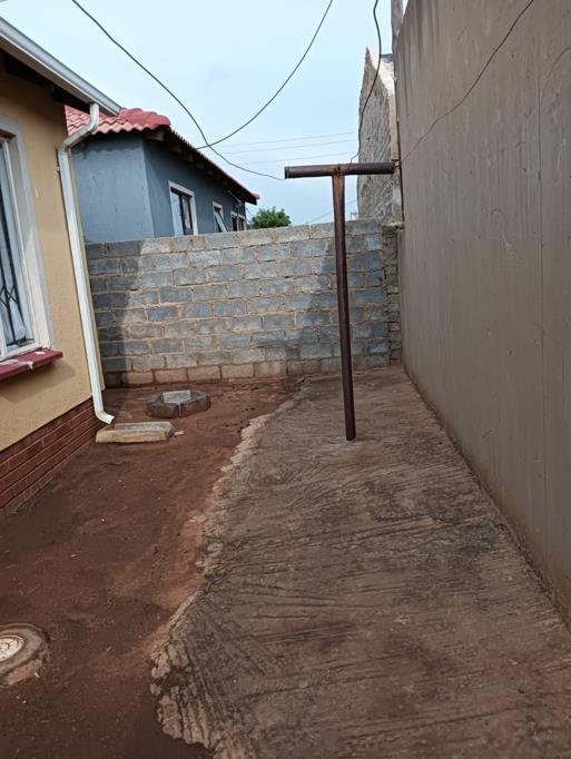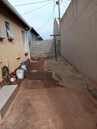 Two bedroom house, one bathroom, tv room and kitchen an open plan. The tv room is spacious enough to accommodate an L shaped couch, The yard is big , it can accommodate future extention. Main bedroom offers BIC. The floors are well tiled,ceilings are completely well done. Some cupboards in the kitchen for convenience.