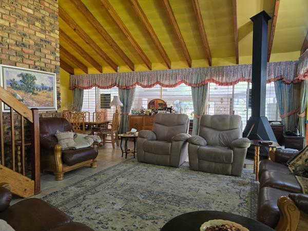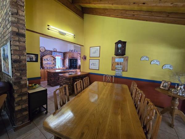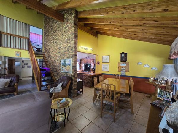 Outside, the lush, landscaped garden is a highlight of the property, featuring a sparkling pool and a lapa area perfect for entertaining or unwinding. In addition, the property boasts three workshops, ample storage, and a strong borehole, ensuring convenience, self-sufficiency, and endless potential.