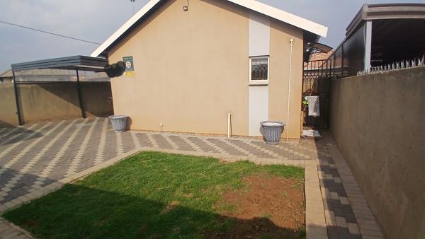 READY TO MOVE IN PROPERTY. Situated on the corner stand , the streets are tarred, streets lights is the order of the day. Well kept property with wall fence on all sides, two access gates , carport for 2 cars, well paved , well manicured garden and security measures in place. The property offers 2 bedrooms, 1 bathroom , kitchen and tv room an open plan. Main bedroom offers the Bic , no Bic in the 2nd bedroom. Bathroom offers the bath tub, basin and toilet. walls are half tiled and is well kept. Electricity is pre-paid. It is priced to sell.