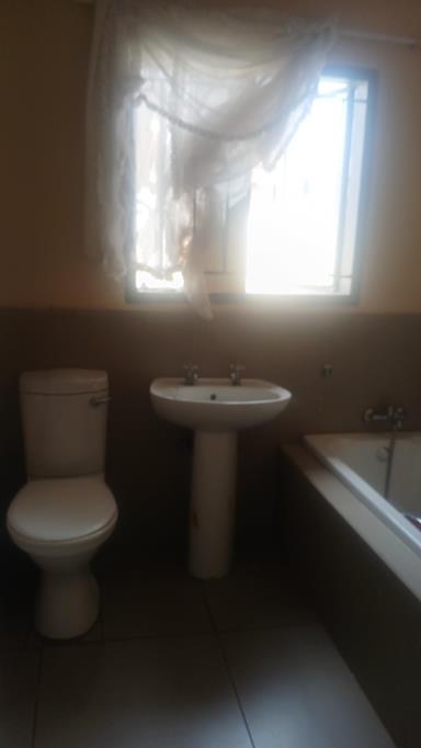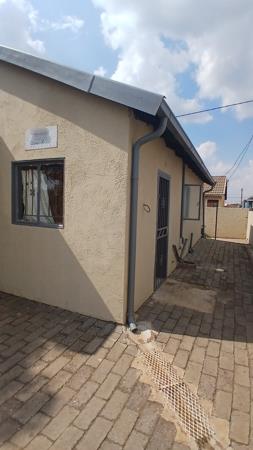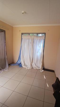 Three bedroom house with a huge yard for future extention. The yard is wall fenced all round with two access gates. One bathroom that offers the bath tub , toilet and shower. Kitchen forms an open plan with the tv room. Pallisade fence and the gates for security reasons.