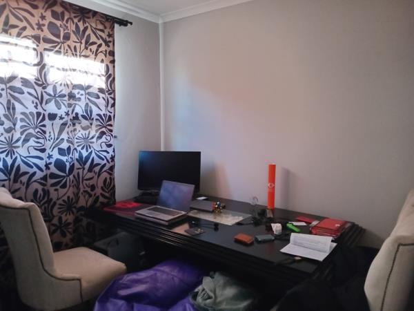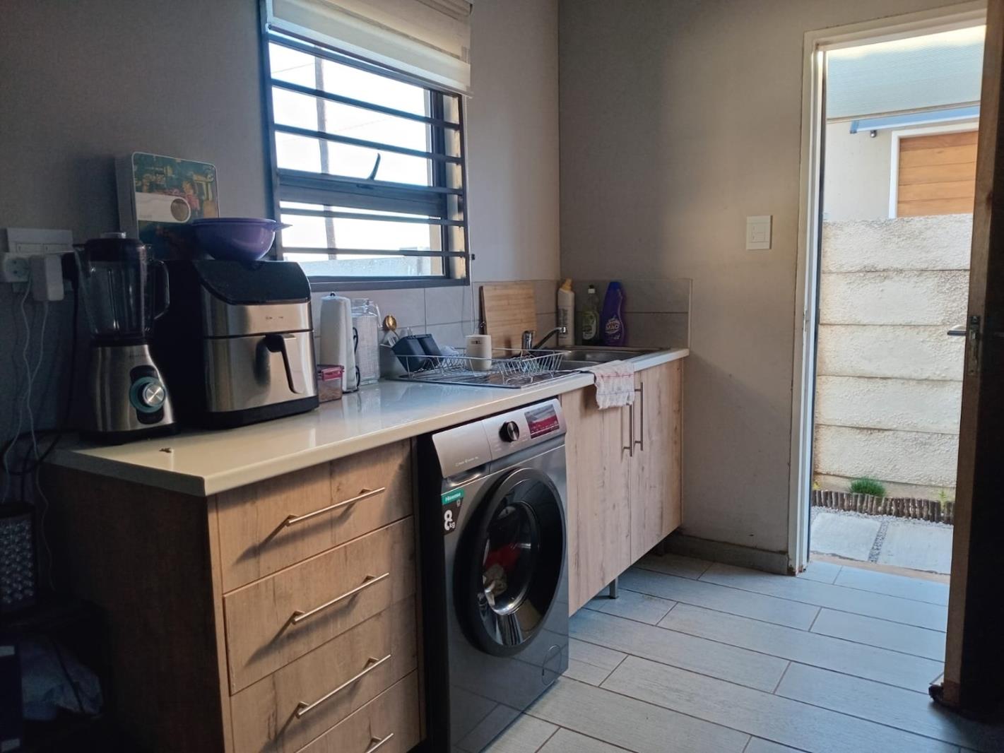 The house boasts a modern Tuscan exterior finish combining timeless elegance with durable materials. A **covered entrance** welcomes you into the home, offering shelter and style. The property includes a **private garden with a tree,perfect for creating your own green oasis or enjoying weekend braais with family and friends. Aluminium windows with burglar bars ensure both natural light and security.
