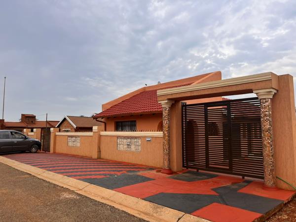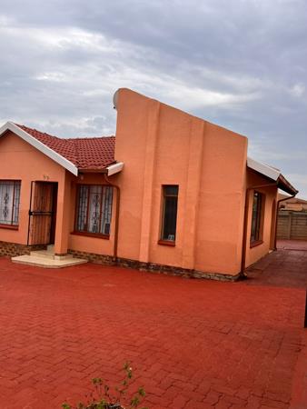 A 3 bedroom house , 2 bathrooms, main bedroom an en- suite, modern Bic in all the bedrooms. Kitchen also well done, sliding door dividing the tv room and dining room. Living rooms are spacious. The Floor tiles still in tact.Well painted house inside out and ample paving to keep the yard very neat and beautiful. Ceilings are neatly done and modern. Situated in a well developed area . Double garage not attached to the property, wall fence around the house and the access gate for security reasons. Its a move in and stay kind of a property.