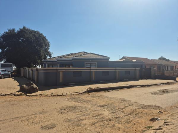 Situated on the main road, close to all amenities, , corner house with a lot of potential. Property offers a huge living room, well tiled, modern PVC ceilings.Modern strong doors both for the kitchen and dining room. Kitchen is made of gloss cupboards doors, beautiful top and is completely well done.. It offers 3 bedrooms, 1 bathroom with no Bic, bedroom sizes are spacious alllows movement inside the room. One bathroom caters for 2 bedrooms, main bedrooms offers the en-suite with a shower and basin, space for a washing machine. The 2nd bathroom offers the bath tub, basin and toilet. Main bedroom offers ample Bic for enough storage , the 2nd bic caters for his and hers shoes. The walls and 2 access gates for convenience and security. Aluminium window frames the entire house.It is a move in and stay kind of a property. Fairly priced .