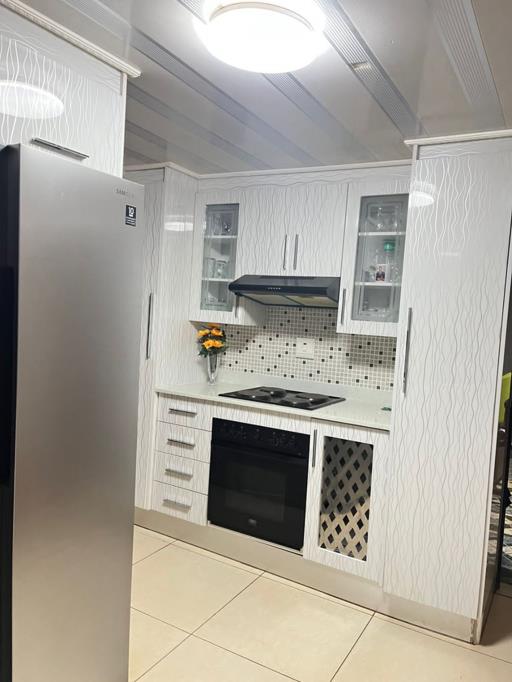 This well-maintained home offers 3 comfortable bedrooms, all fitted with built-in cupboards for convenient storage. The spacious master bedroom boasts a private ensuite bathroom, providing the perfect retreat. The modern fitted kitchen flows seamlessly into the welcoming lounge, creating a warm and functional living space.
