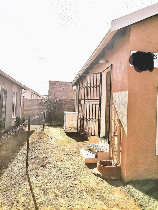 Neat as a pin house, situated in secure village in Palm springs. This property offers spacious 2 bedrooms, only one has Bic. The kitchen offers Bic, kitchen and tv room an open-plan. The bathroom is tiled half against the wall and the floor. The yard size can still accommodate the extension on the property plus the garage.