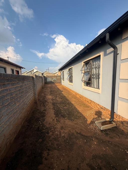 Three bedroom house with an en-suite, 2nd bathroom with the bath tub. the en-suite offers the shower , basin and toilet. Aluminium window frames in all the windows with buglar bars for security measures.Tuscan roof type enhances the beauty of the property. Kitchen and tv room forms the open plan, kitchen offers BIC. Four walls and two access gates, situated in a well developed area with ample opportunities, closer to all amenities.