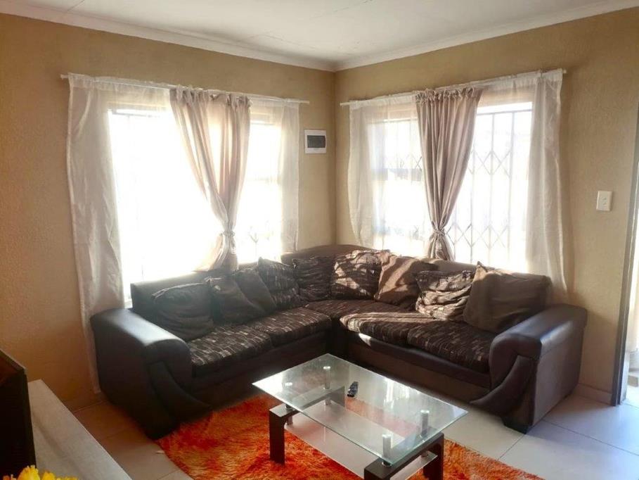 Outside, the expansive yard provides ample open parking space for at least 6 cars, making it perfect for hosting guests or accommodating your vehicles with ease. Security is paramount, with burglar bars adorning the windows and a sliding security gate ensuring peace of mind.