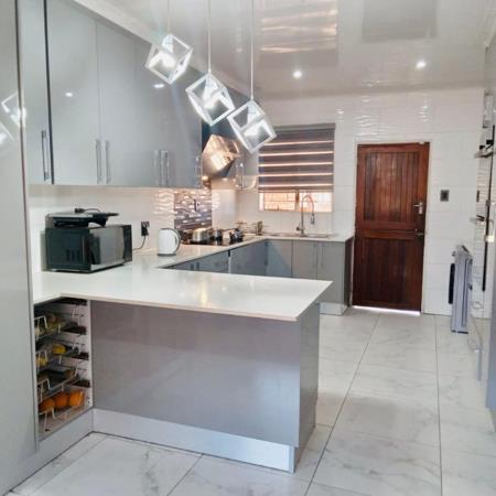 Discover this stylish 4-bedroom home that combines modern living with luxurious comfort. The property boasts a very spacious lounge, perfect for family gatherings and entertaining. The contemporary kitchen is thoughtfully designed, making meal preparation a delight. The main bedroom offers the privacy of an en suite bathroom, adding a touch of luxury to your daily routine.
