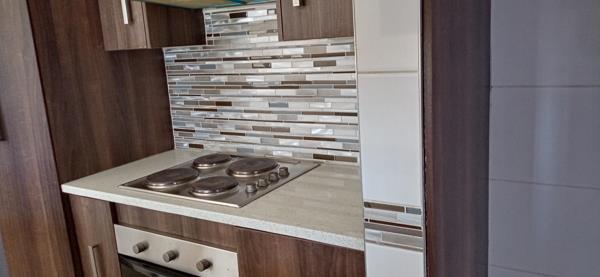 The property features an open-plan living area that flows seamlessly into a neatly designed kitchen, complete with a separate scullery for added convenience. All three bedrooms are well-sized with built-in cupboards, while the two bathrooms include a main en-suite.