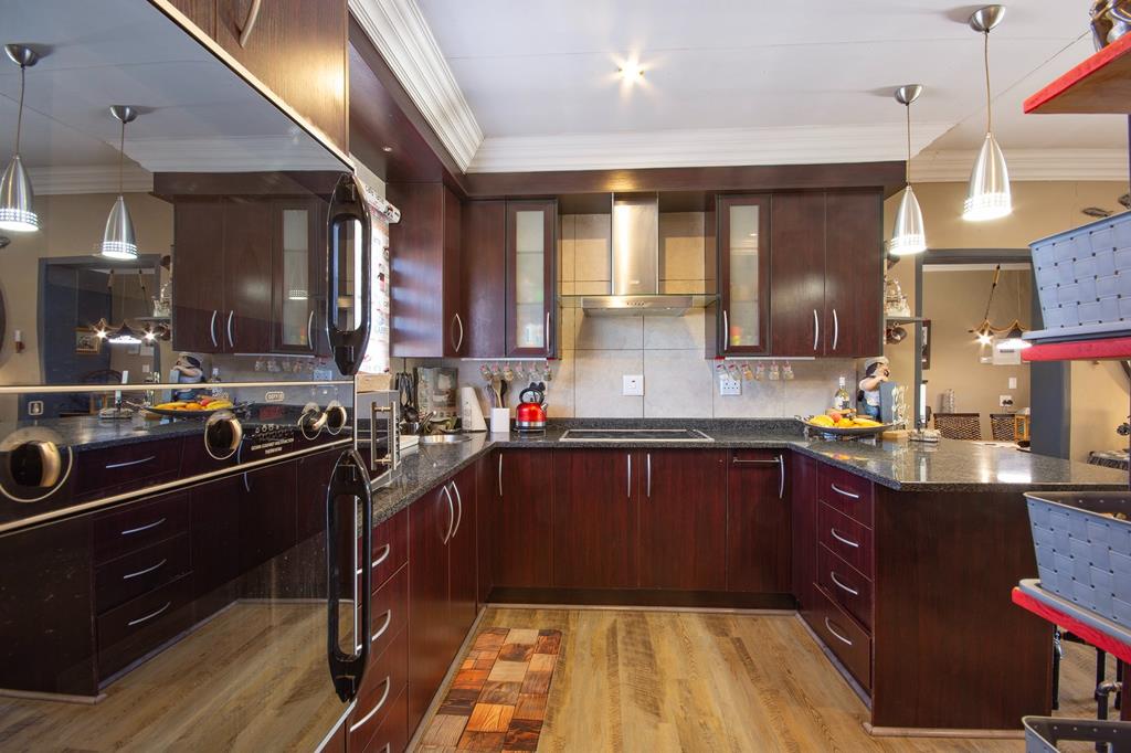 The kitchen is both functional and inviting, fitted with ample cupboard space, modern finishes, and quality countertops that make meal preparation a joy. Offering a stove, double eye-level oven and a separate scullery with 2 wet connections and a clever solution for a tumble dryer. A handy breakfast nook adds a casual dining option and overlooks the heart of the home. The braai room is adjacent to the spacious living room and has a built in braai and sliding doors leading to the cosy outside patio.