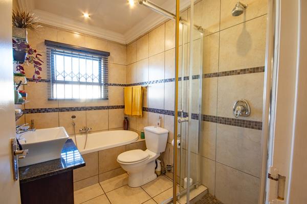 Accommodation includes three generously sized bedrooms, each offering built-in cupboards and a peaceful retreat from the days hustle and bustle. The master bedroom features an en-suite bathroom with a shower, bath, basin and toilet while the second bathroom, equally neat and modern, is equipped with both a bath and shower to suit the whole familys needs.