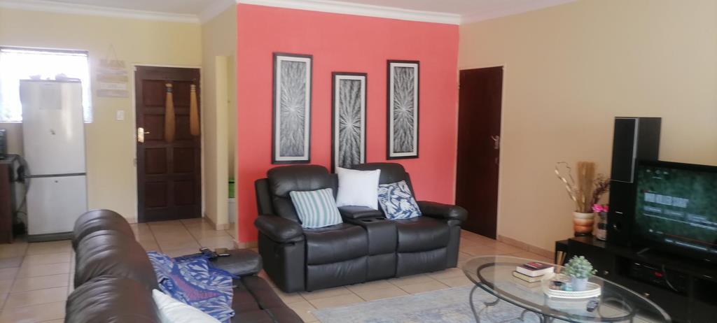 This spacious lovely home is located in a well established area close to the school and walking distance to the mall. It welcomes you to an open plan lounge, dining area, a beautiful kitchen with melamine tops and a private scullery with dish and laundry washing machine connection. Well sized bedrooms with built in cupboards and two of them has air conditioners which will be perfect to keep the rooms warm in winter and cool in summer.
