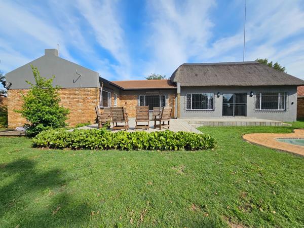 It offers four bedrooms, two bathrooms and a separate toilet, open-plan living, dining area and kitchen, study and a large entertainment room with braai that leads to the garden and pool.