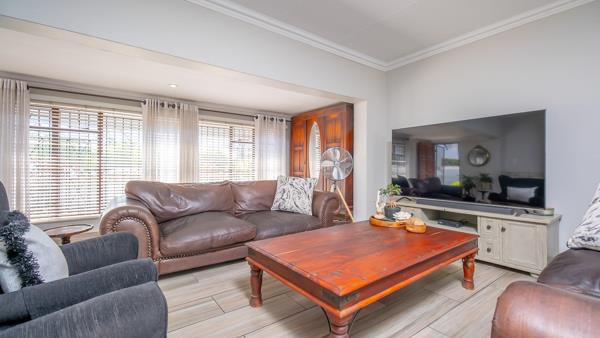 Practicality is carried through with a fully tiled double garage, complete with built-in cupboards, and an extra-large storeroom. Outdoors, the low-maintenance garden is enhanced by a water backup system with two JoJo tanks (5,000L and 2,500L).
