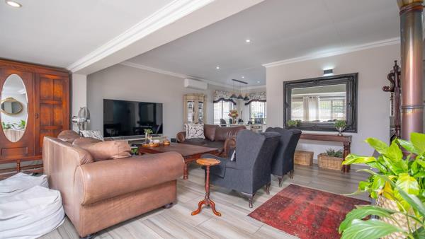 The propertys sustainable design ensures independence and efficiency. With 24 solar panels, an inverter system, two 5kVA batteries, and a solar geyser supplying the kitchen and guest bathroom, the home runs off-grid during the day without compromising on comfort. Year-round comfort is guaranteed with three air-conditioning units, including a solar-ready unit. A sleek fireplace provides both warmth and a welcoming ambiance for indoor gatherings.