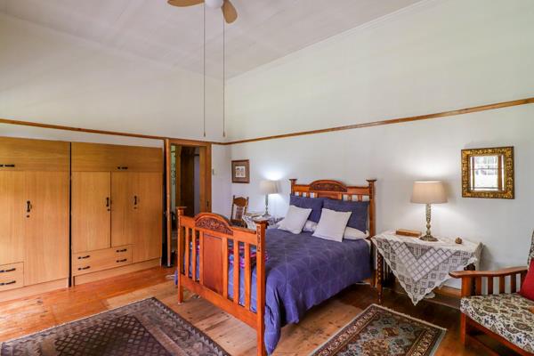 With 340m under roof, the main house offers 3 large bedrooms where the master suite has the original wooden flooring and 2 double French doors opening to the wrap-around porch. The second bedroom is very big with built-in cupboards and a door also opening to the porch and front garden. The 3rd bedroom is separate and down the passage. 2 separate white bathrooms that have a shower or a bath in each was successfully restored and renovated.