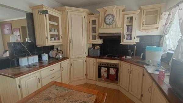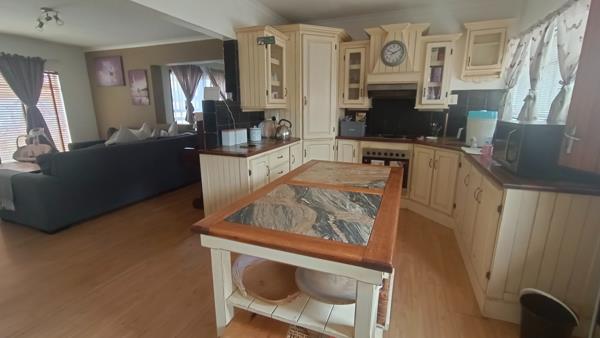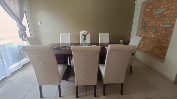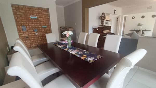Well maintained family home with a lovely swimming pool and lapa with built in braai for family time together. Spacious open plan living, dining area with laminated floors and kitchen. Modern kitchen with a electric stove, granite tops, double sink and dishwasher connection. From dining room sliding doors leading to the swimming pool. Three well size bedrooms. Spacious main bedroom with open plan bathroom and sliding doors leading to the front garden. Two guest bathrooms.