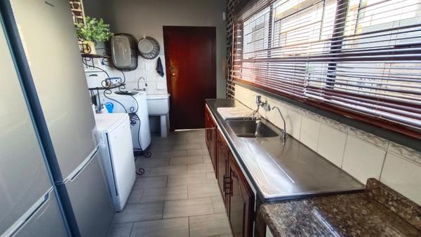 BONUS. Flatlet with own entrance. Open living area. Spacious bedroom fitted with built in cupboards and en suite bathroom. Own private garden, enclosed garage and covered carport.