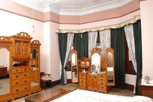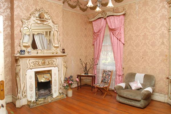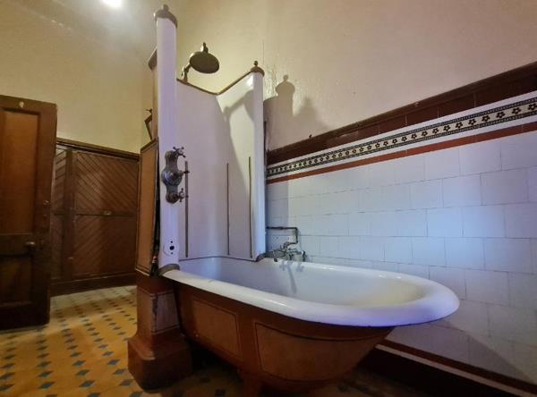 Entering through the main door, which is highlighted by vibrant lead glass inserts, you are welcomed into a residence where Victorian charm meets sophistication. The ladies'' lounge is graced by a classic Rosewood fireplace, a spacious bay-view window, and decorative wallpaper that evokes old-world charm. This section includes three bedrooms, each spacious and filled with natural light. The bathroom is large and elegantly styled, complete with a full bath and porcelain toilet, offering relaxation and luxury at the heart of the home.