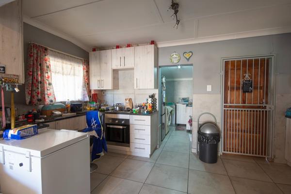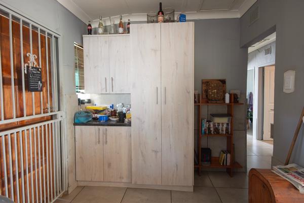 The fully tiled, cosy living area features a freestanding Jetmaster fireplaceideal for relaxing with family on chilly evenings. The kitchen is well-equipped with built-in cupboards and has a practical separate laundry/scullery area. For your security, the house is secured with burglar bars and security doors.