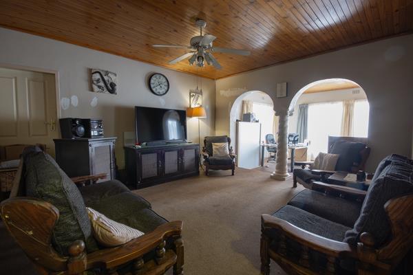 The home features 3 bedrooms and 2 bathrooms, with the main bedroom boasting its own en-suite bathroom. The spacious kitchen is fitted with beautiful wooden cupboards, providing ample storage and a warm, welcoming atmosphere ideal for preparing family meals. Flowing from the kitchen, youll find a dining room and living room, both well-sized for gatherings and relaxation. There is also a small study/office space, perfect for working from home or managing household needs.
