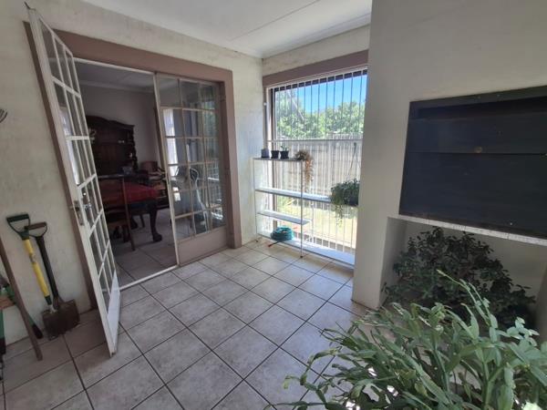 Spacious and sunny open-plan living, dining, and kitchen area with a separate scullery. Doors from the dining room lead to a covered and secure entertainment area with a built-in braai, perfect for family gatherings and relaxation. Low maintenance garden.
