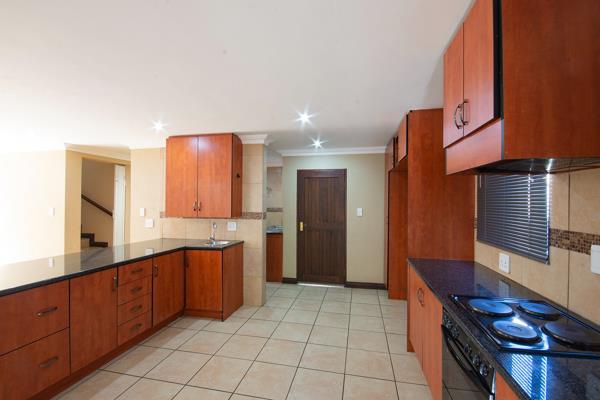 Glass sliding doors from the kitchen open onto a charming patio complete with a built-in braai the perfect setting for outdoor entertainment or leisurely weekends with family and friends. A conveniently located guest toilet adds to the comfort of the lower level.