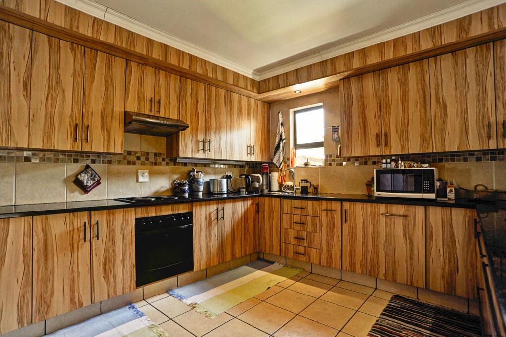 Step inside and be welcomed by a spacious lounge, dining room, and entertainment area featuring a built-in braai perfect for family gatherings and entertaining guests. The well-designed kitchen is fitted with ample cupboards, an electric hob, and an under-counter oven, ensuring practicality and style. A separate scullery provides additional workspace and convenience, with space for both a dishwasher and washing machine.