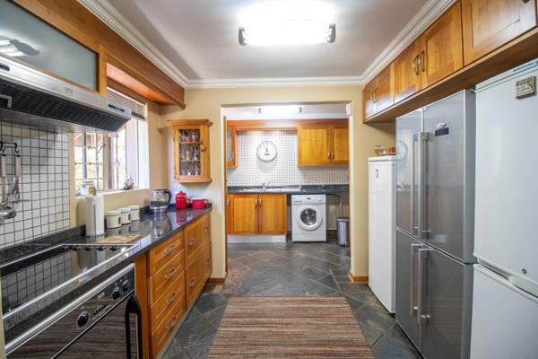 The heart of the home, the kitchen, is a chef''s delight, equipped with ample built-in cupboards, space for three fridges, and a undercounter electric oven with hob. A separate scullery offers additional convenience, with provisions for a dishwasher and washing machine, ensuring that household chores are effortlessly managed.
