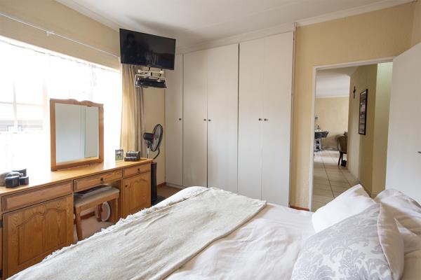 The main bedroom offers privacy and comfort with its own en-suite bathroom. The additional two bedrooms are well-sized and share a neatly appointed second bathroom. For those who love to entertain, the outdoor area boasts a built-in braai, perfect for hosting gatherings.
