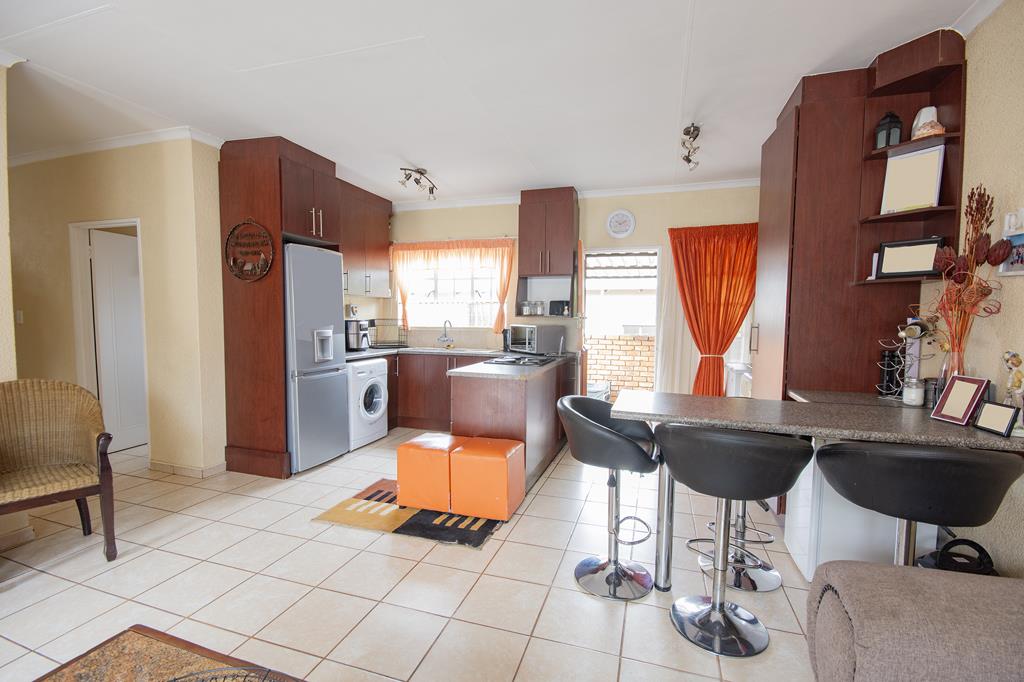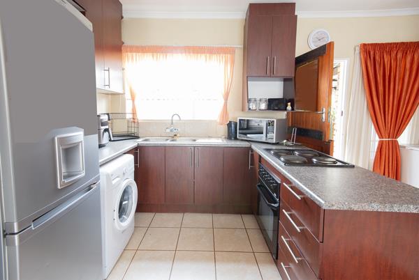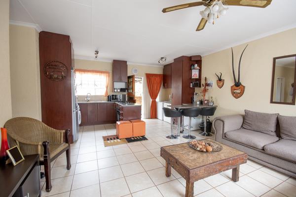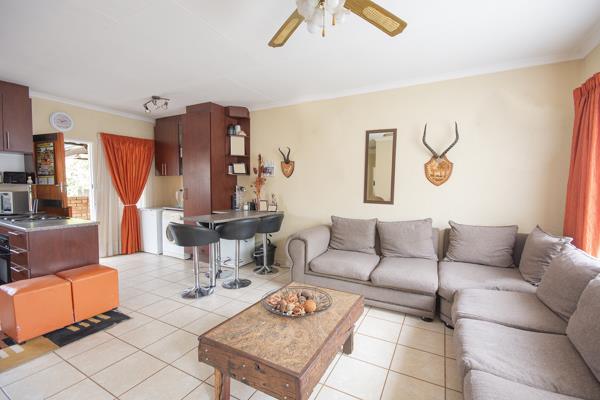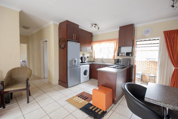 Welcome to this beautifully maintained 3-bedroom, 2-bathroom townhouse, nestled in the heart of Jordaanpark within a secure complex. Upon entering, you are greeted by a spacious open-plan lounge and kitchen area, creating a warm and inviting atmosphere. The kitchen is highly functional, equipped with all essential appliances, making meal prep a breeze.