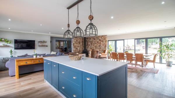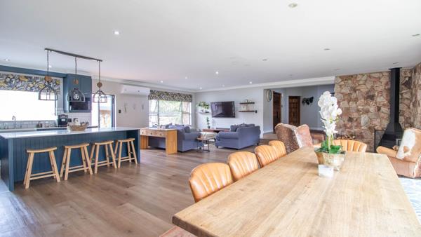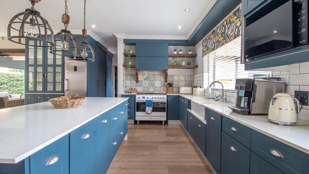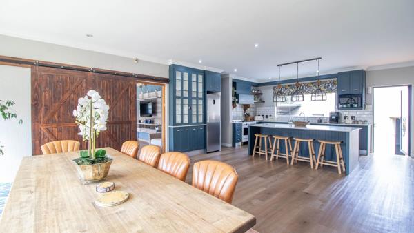 Slide open a classic barn door and unveil the pièce de résistance a full-fledged entertainment and braai room. Complete with a second kitchen, built-in gas braai, bar counter, walk-in wine cellar/bar, and generous lounge and TV space all opening up to the garden and pool through another set of stacker doors. This home was made for unforgettable gatherings.