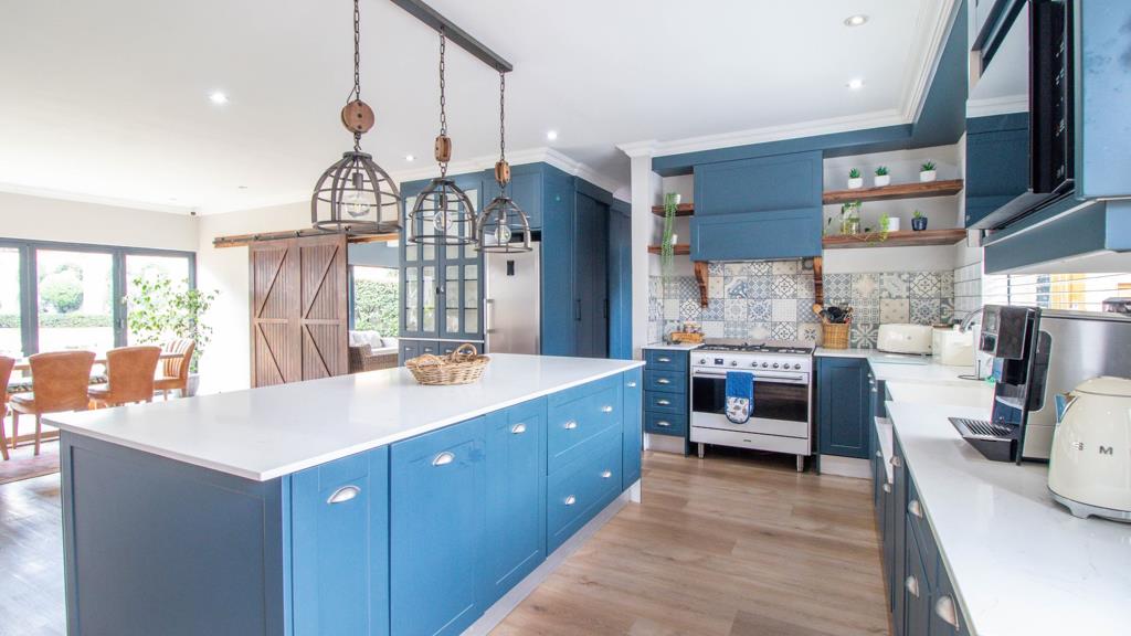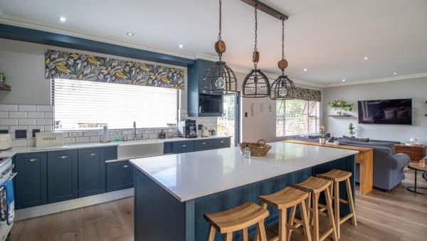 Beyond the double electric garage, a commanding front door opens to a sweeping open-plan living space that feels like it was plucked straight from a country estate magazine. At the heart of the home, a charming country-style kitchen steals the spotlight with its centre island lit by ornate chandeliers, granite countertops, a large gas stove, walk-in pantry, and a separate scullery/laundry this space is a chef''s delight and a family''s dream.