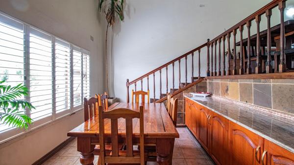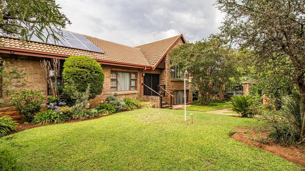 This residence comprises four spacious bedrooms and four bathrooms, two of which are en-suite, ensuring comfort and privacy for all occupants. A dedicated study provides an ideal space for work or quiet contemplation. The property extends its appeal outdoors with a large 1469 sqm erf, featuring a sparkling swimming pool, a lapa, and a built-in braai, perfect for outdoor entertaining. Additional amenities include a built-in bar, air conditioning, along with domestic rooms. The home is further enhanced by modern conveniences such as fibre connectivity, a battery inverter, and water tanks, ensuring a sustainable and connected lifestyle. With three garages and four parking spaces, there is ample room for vehicles. This suburban and country living property offers a blend of comfort, space, and security.