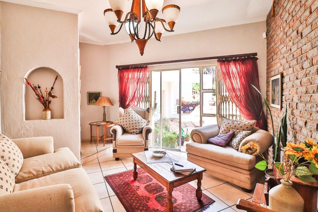 Security is paramount in this abode, with features including an alarm system, burglar bars, and trellis doors providing comprehensive protection for residents and their belongings. The garden adds to the charm of the property, providing a tranquil backdrop for outdoor activities and leisure.