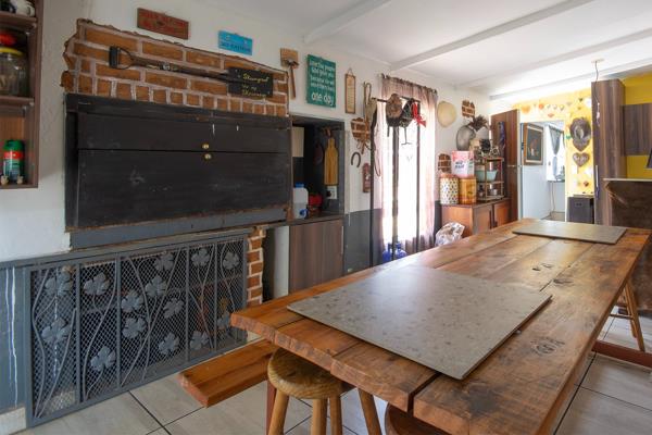Upon entering, you are welcomed into a warm and inviting living area that seamlessly flows into the indoor braai and entertainment space, perfect for family gatherings and social occasions. The well-appointed kitchen is a true highlight, featuring ample cupboard space, making meal preparation effortless and organized.