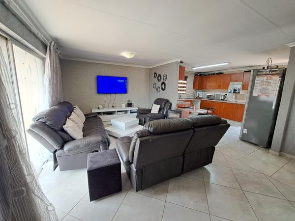 Step inside to discover a neat and well-organized kitchen, complete with ample cupboard space and a cozy breakfast nook. The open-plan design seamlessly connects the kitchen to the dining and living areas, creating a warm and inviting atmosphere for family gatherings and entertaining.