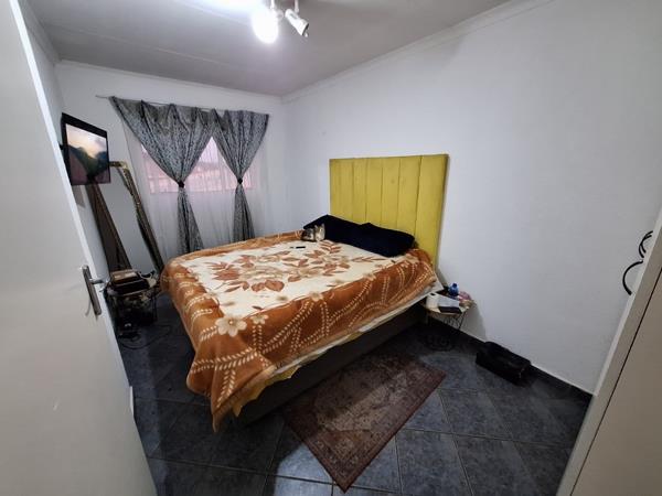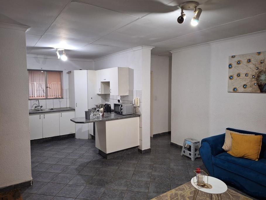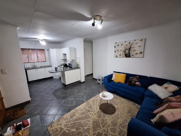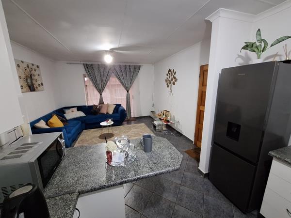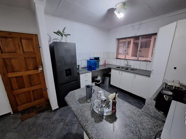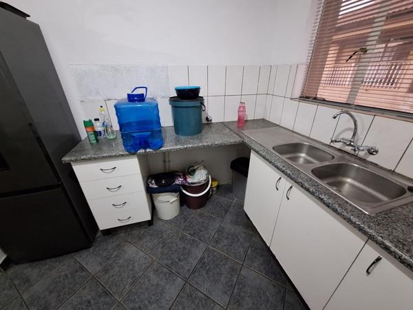 The kitchen has plenty of cupboard space, a grocery cupboard, double sink, under counter space for a washing machine, a hob and under counter oven and floor space for a fridge.
