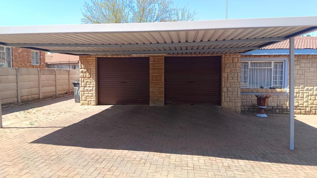Double garage and carport for two cars. Direct entrance to the house. In garage a workshop with cupboards. 2500 L water tank and pressure pump. Alarm system and burglar bars. Outside toilet and electric entrance gate. Do not delay and secure your viewing today.