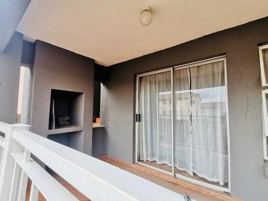 69 square meters of living space, this unit combines convenience and modern living in a practical layout, ideal for small families, first-time buyers, or those seeking a lock-up-and-go home. The open-plan kitchen is both functional and stylish, featuring an electric stove, under-counter oven, and space for a dishwasher or washing machine. It flows seamlessly into the living area, which opens up to a small patio with railings and a built-in braaiperfect for relaxed outdoor entertaining or enjoying a peaceful evening outdoors.