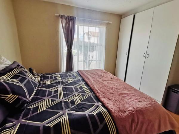 Both bedrooms are equipped with built-in cupboards, providing ample storage space. The bathroom includes a bath, basin, and toilet, offering everything you need in one well-appointed space. The complex is secure, with access-controlled gates ensuring peace of mind. Open parking is conveniently available for residents. Conveniently located just 5 minutes from a local shop and 10 minutes from a primary school, this townhouse is ideally situated for those seeking easy access to everyday amenities while enjoying a quiet, secure environment. Whether you''re a first-time buyer or looking for a low-maintenance home, this townhouse offers the perfect blend of comfort and practicality.