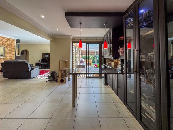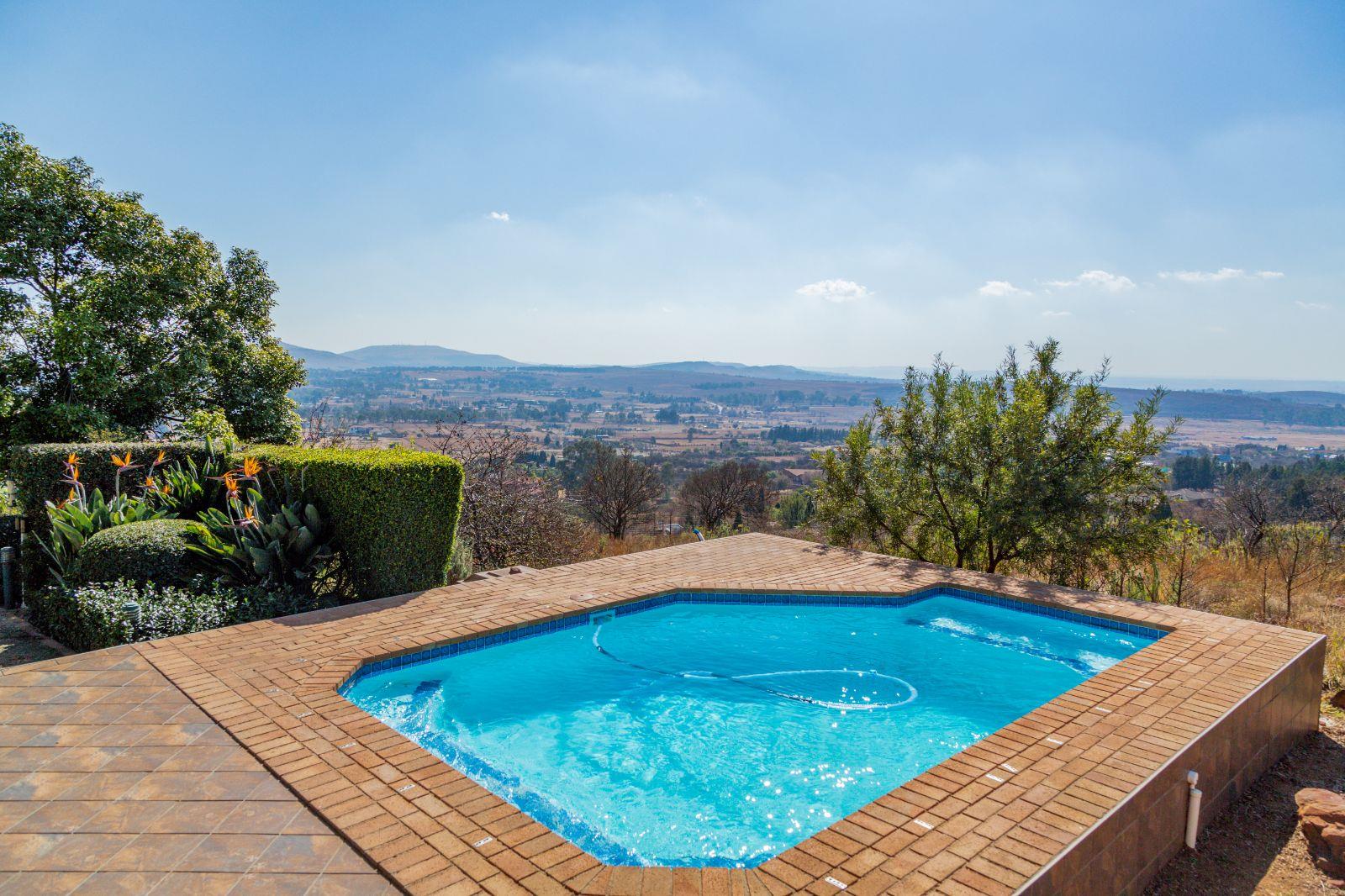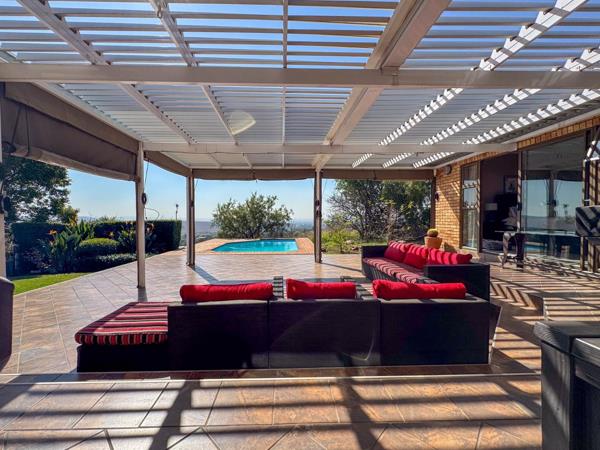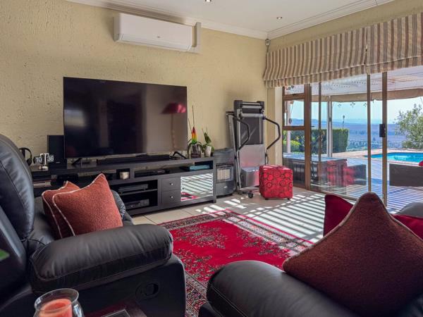Step into spacious, air-conditioned open-plan living areas that flow seamlessly onto an inviting entertainment space, where panoramic views of the Suikerbosrand and distant city lights create the perfect backdrop for relaxation or entertaining. The kitchen is both stylish and functional, featuring granite tops, gas hob, ample cupboard space, and a scullery/laundry room.