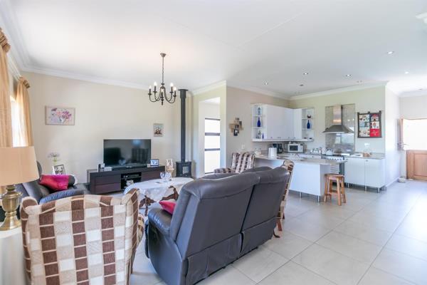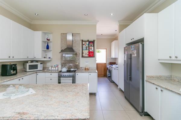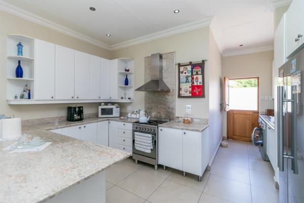 Step outside to a lovely patio with a built-in braai, perfect for weekend get-togethers or casual outdoor dining. The patio overlooks a neatly maintained lawn, offering a peaceful outdoor space for children to play or simply to unwind.