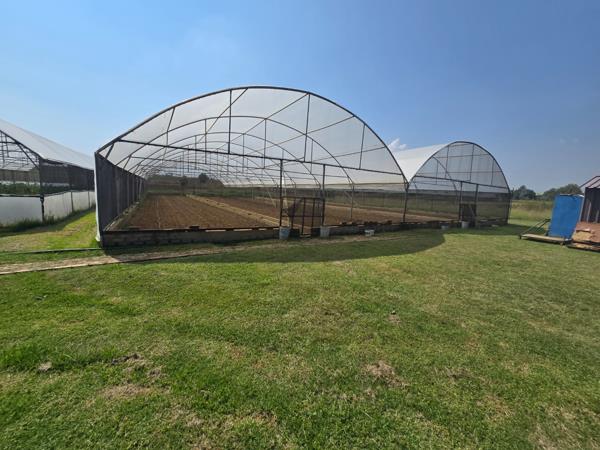 The property is fully equipped for farming, featuring five dripper tunnels, ten hoop tunnels, and three net houses, offering excellent agricultural potential. An unfinished dam and open land provide further expansion opportunities.