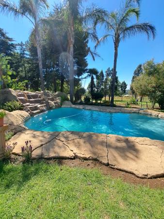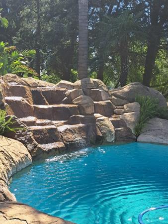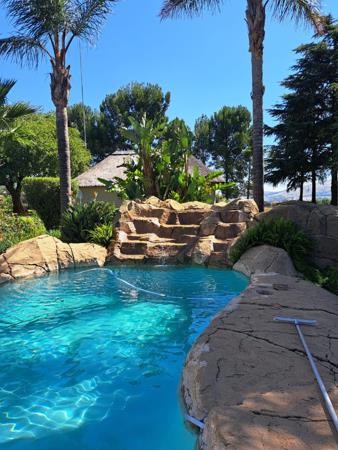 THE OUTSIDE ENTERTAINMENT AREA OFFERS A SPARKLING POOL WITH FOUNTAINS ,A BRAAI AREA