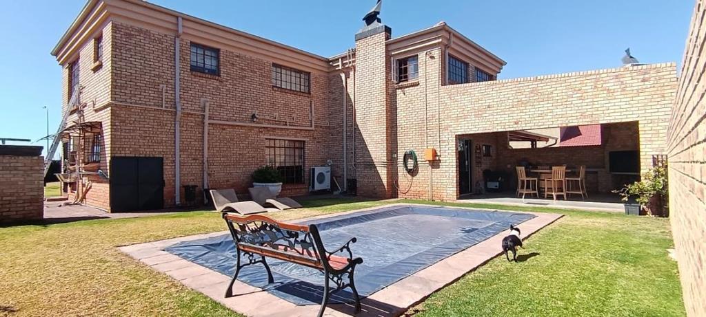 The outdoor area is an entertainers dream, featuring a covered patio with built-in BBQ, perfect for alfresco dining. The landscaped garden includes a beautifully designed heated pool, surrounded by stone, clean cut lawn and stylish outdoor furniture. The entertainment area is further complimented by an inside braai room with built-in braai and kitchenette ..The space is ideal for hosting gatherings or enjoying peaceful relaxation.